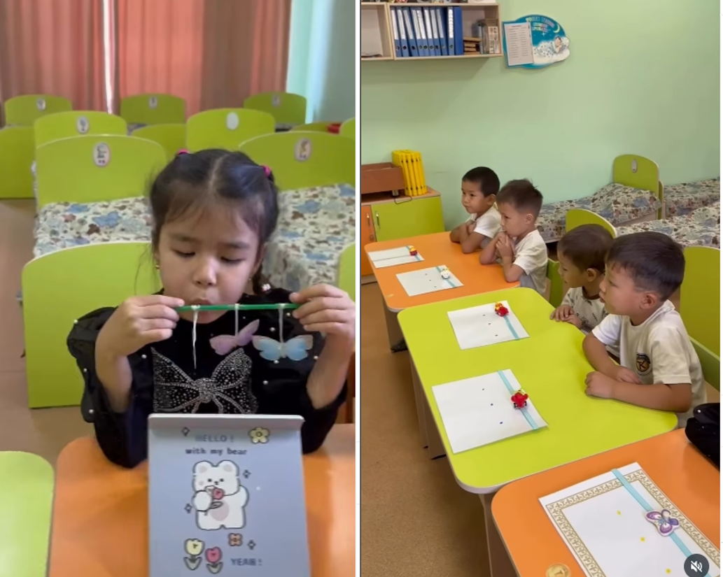 Мақсаты:«Уу» дыбысының артикуляциялық қалпын көрсету және таныстыру. Берілген дыбысқа сөз ойлап айтуға үйрету. «Уу» дыбысының орнын сөздің басында, ортасында, соңында ажырата алуға үйрету.